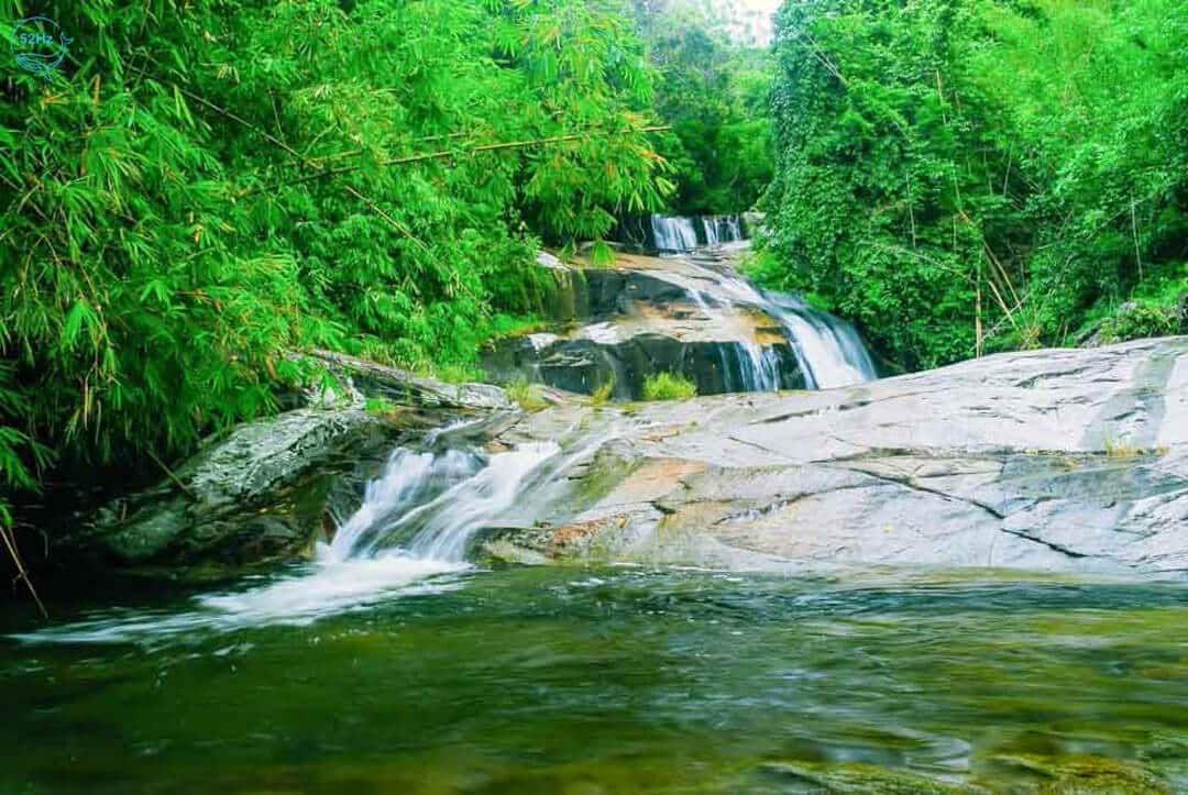 Thác 9 tầng nằm cách khá xa hồ Đa Mi. Trên đường đến với con thác này, bạn sẽ được chiêm ngưỡng khung cảnh thiên nhiên tươi đẹp và hít hà mùi hương của nhiều loại gỗ quý cùng hoa cỏ, thảo mộc dọc hai bên đường đi.