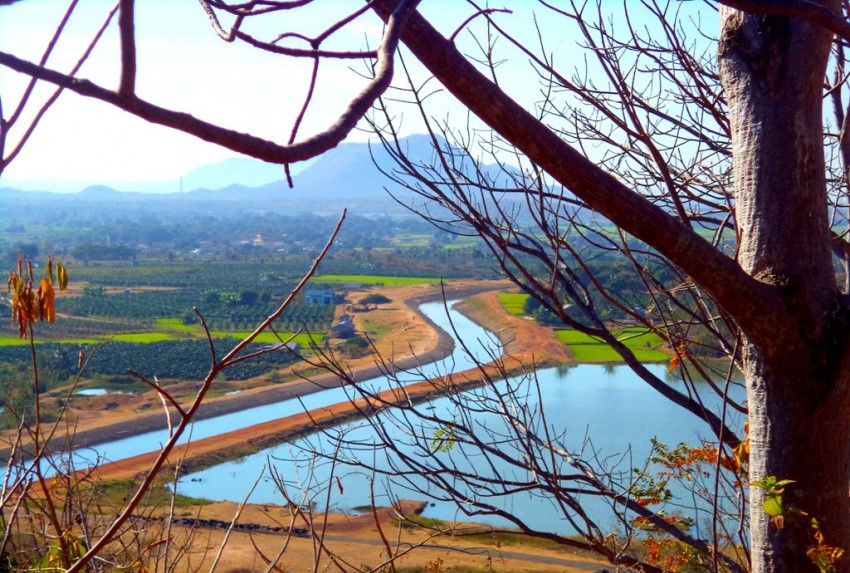 Men theo con đường mòn tiến vào rừng và leo lên con dốc cao, bạn sẽ được ngắm toàn cảnh, trọn vẹn vẻ đẹp hoang sơ quyến rũ và diệu kỳ của hồ Sông Quao. Từ trên cao, những dòng kênh dẫn nước sẽ hiện ra một cách độc đáo với những dòng chảy lúc thẳng, lúc ngang. Bởi vì, nhánh thẳng sẽ dẫn nước cung cấp cho hoạt động sinh hoạt ở Phan Thiết và nhánh ngang kia sẽ vòng quanh núi, mang đến nguồn nước cho những cánh đồng lúa bạt ngàn hay những vườn thanh long xanh ngắt.